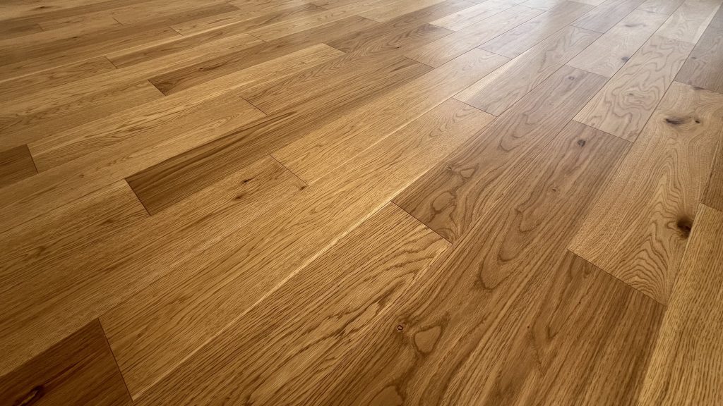 温かみと心地よい肌触りのあるパイン材無垢フローリングは、裸足で快適に過ごせます。遮音等級を求められるマンションには、防音性能のあるオーク材突板フローリングで、機能的でありながら天然木の風合いも楽しめます