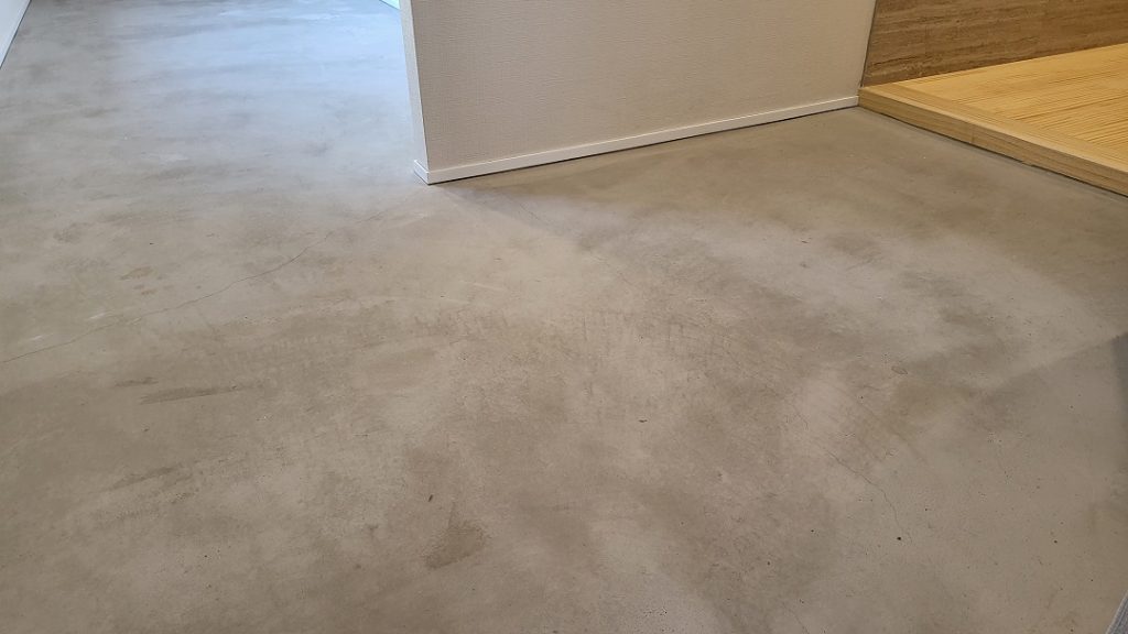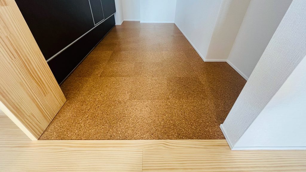 継ぎ目のないなめらかな質感は、無機質でシンプルなデザインで無垢フローリングの温もりを際立たせながら、玄関に広がりと洗練さをもたらします