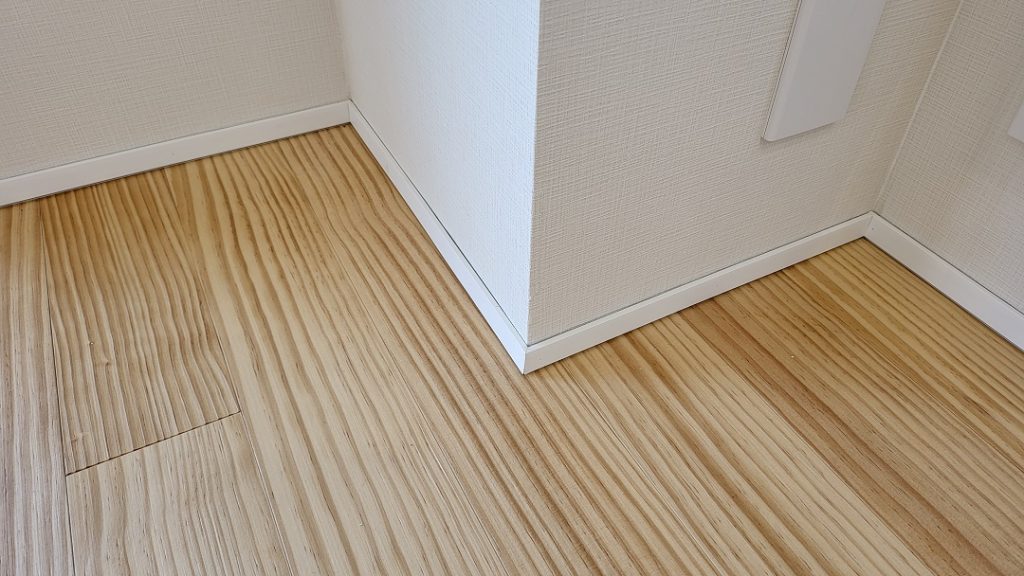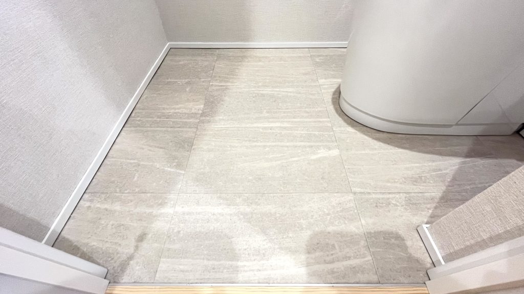 日常的に水や汚れが発生しやすい洗面室、トイレには、空間の印象を損なわないデザインはそのままに、耐久性・清掃性の高い継ぎ目の少ない床材を採用しました