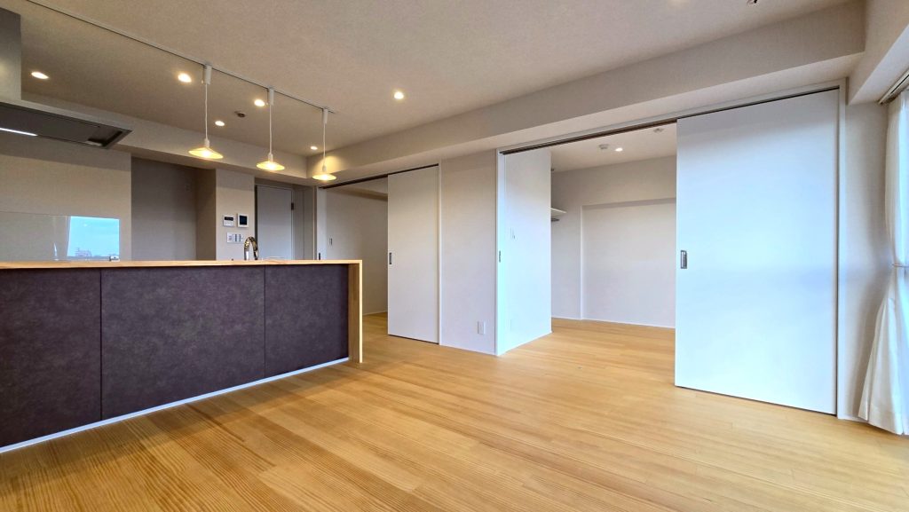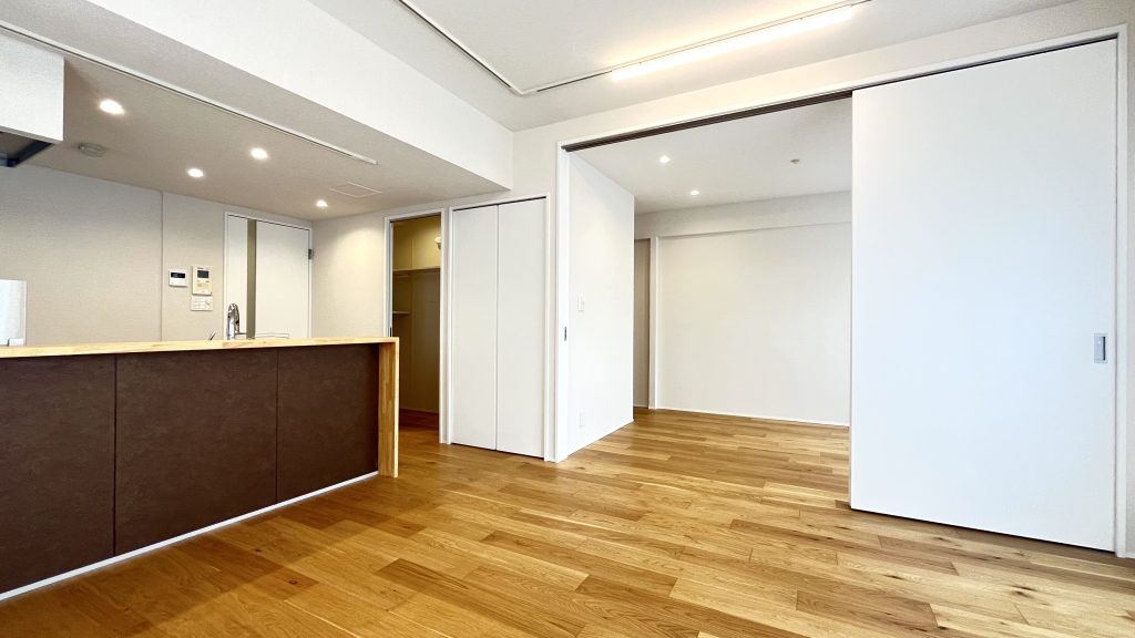 LDKとつづく洋室には自在に繋げる可変性の高い間仕切戸を採用、住む人のライフスタイルに合わせた使い方を可能にしています