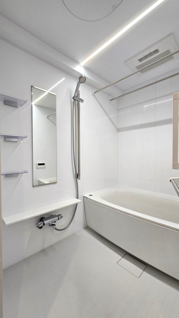 肌に触れる浴槽は、肌触りと快適さにこだわった仕様を採用。浴室乾燥機などの機能性も加わり、居心地がよくリラックスできる、多機能な空間に仕上げました