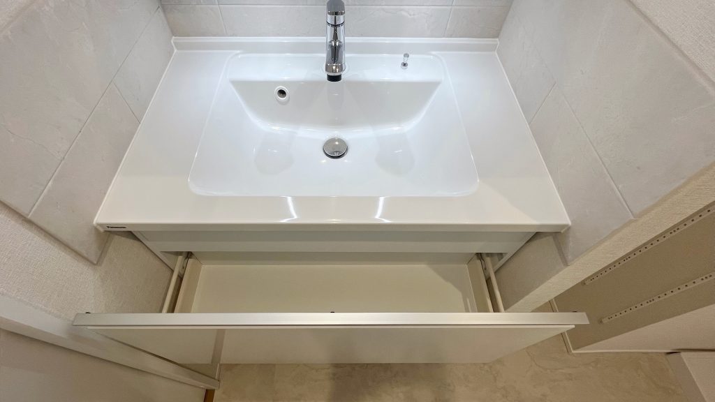 足元がすっきりすることで圧迫感が少なく、また洗面台下のスペースを自由に使えるメリットがあります