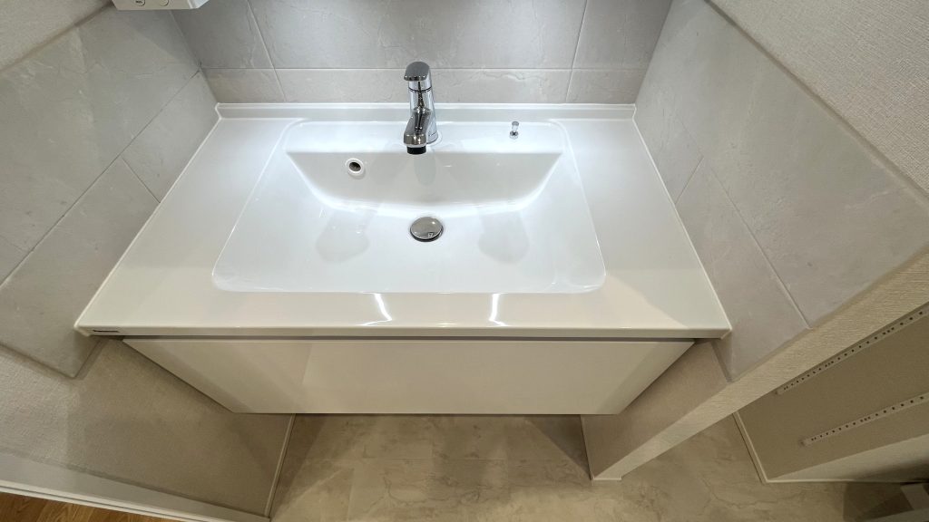 洗面ボウルとカウンターが一体化したデザインは、継ぎ目や段差がないためお手入れが簡単です