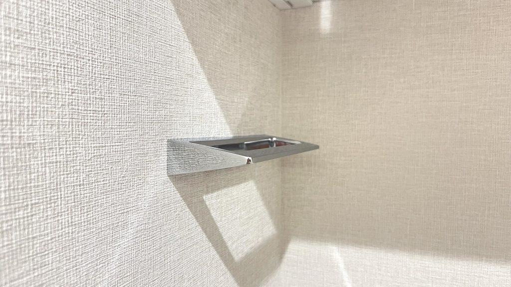 シンプルで凹凸の少ないデザインと、より壁に馴染むしっくいホワイト柄は、空間との一体感をつくります