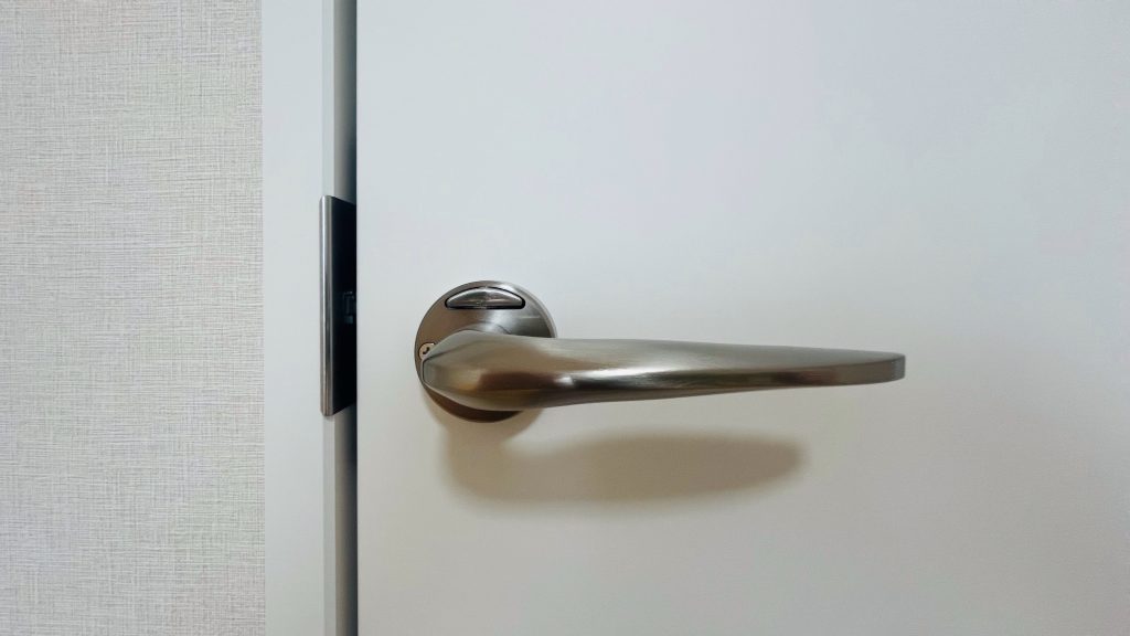 肌に触れるハンドルは、光沢のあるデザインで耐久性にも優れたメッキ素材を採用しました。プライバシーを考慮し、施錠ができる仕様です※ただし、LDK入口建具には錠は付いていません