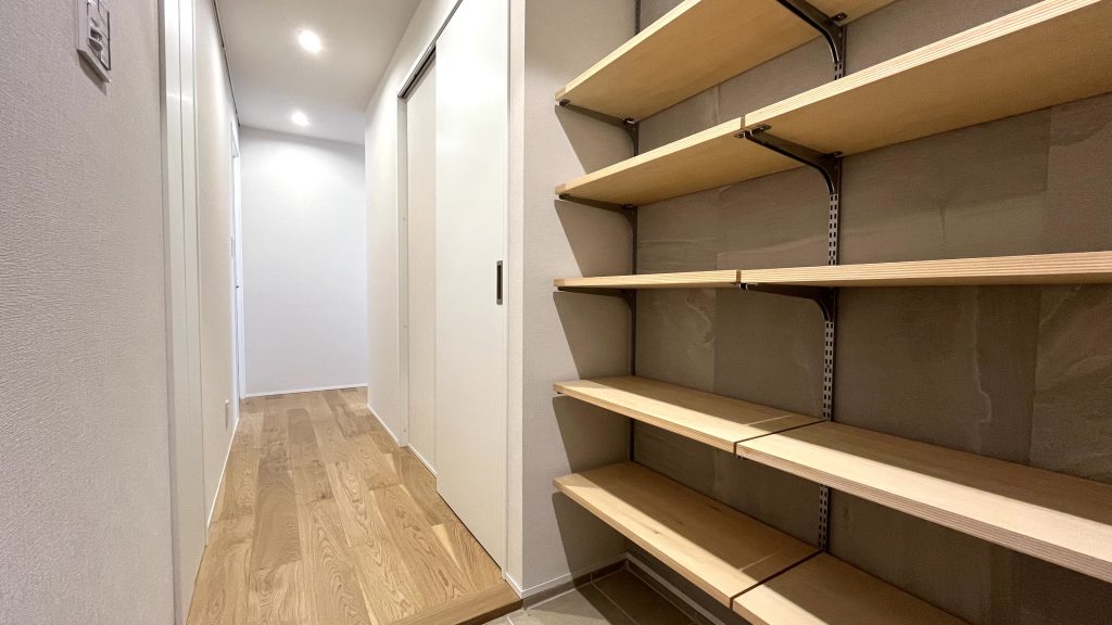 暮らしの変化や必要に応じて、扉を付けたい場合に備え、想定箇所にはあらかじめ下地をいれてあるので、後付けすることが可能です