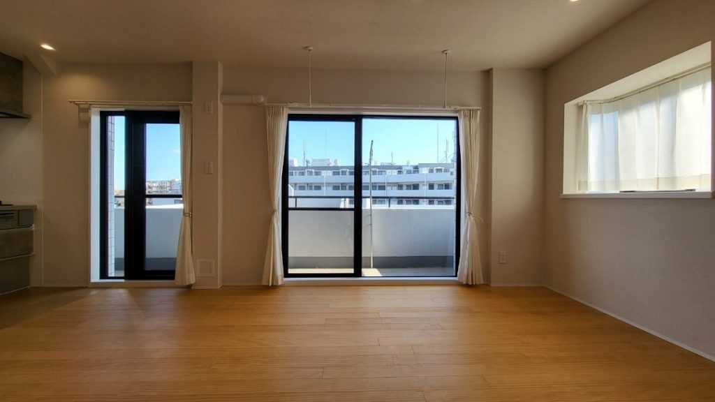 ▪ リビングはワイドスパン+出窓のため両面採光で明るく開放的