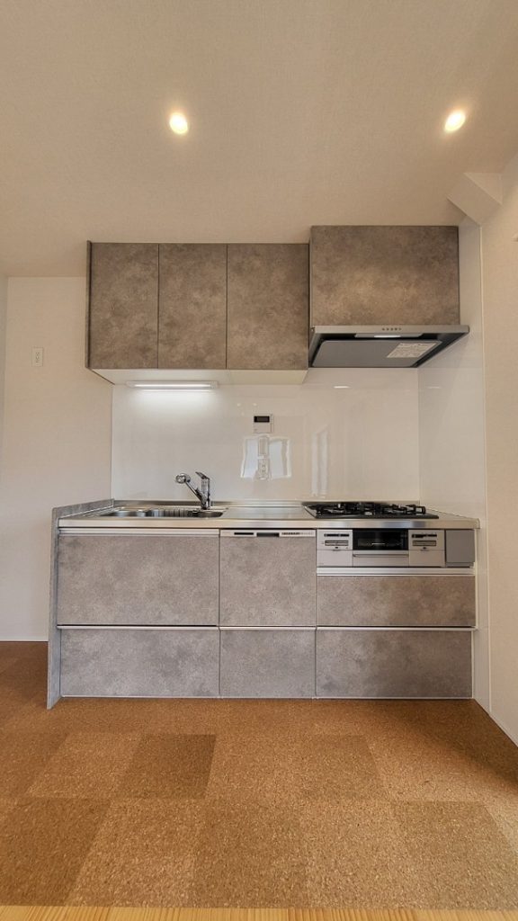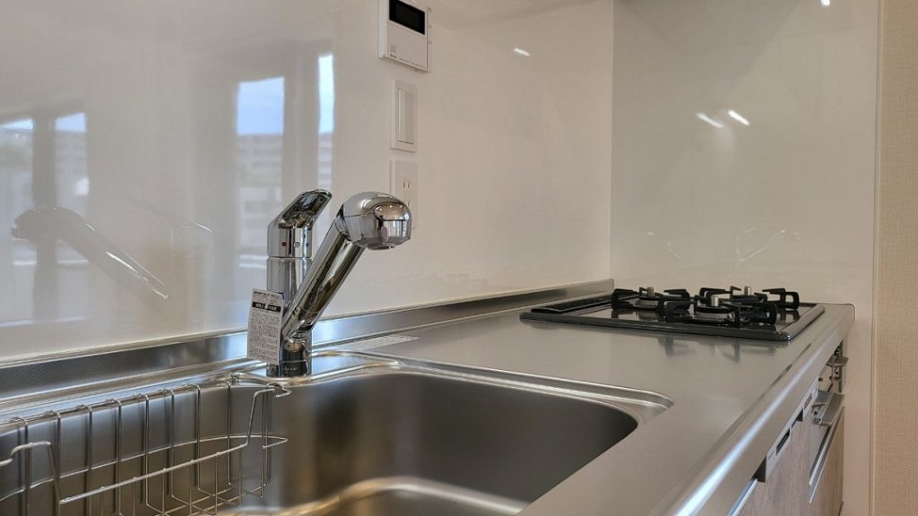 システムキッチン(ステンレスワークトップ、浄水器一体型水栓、食洗機)