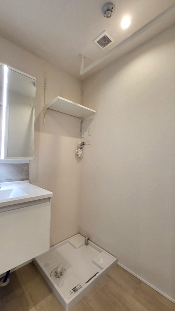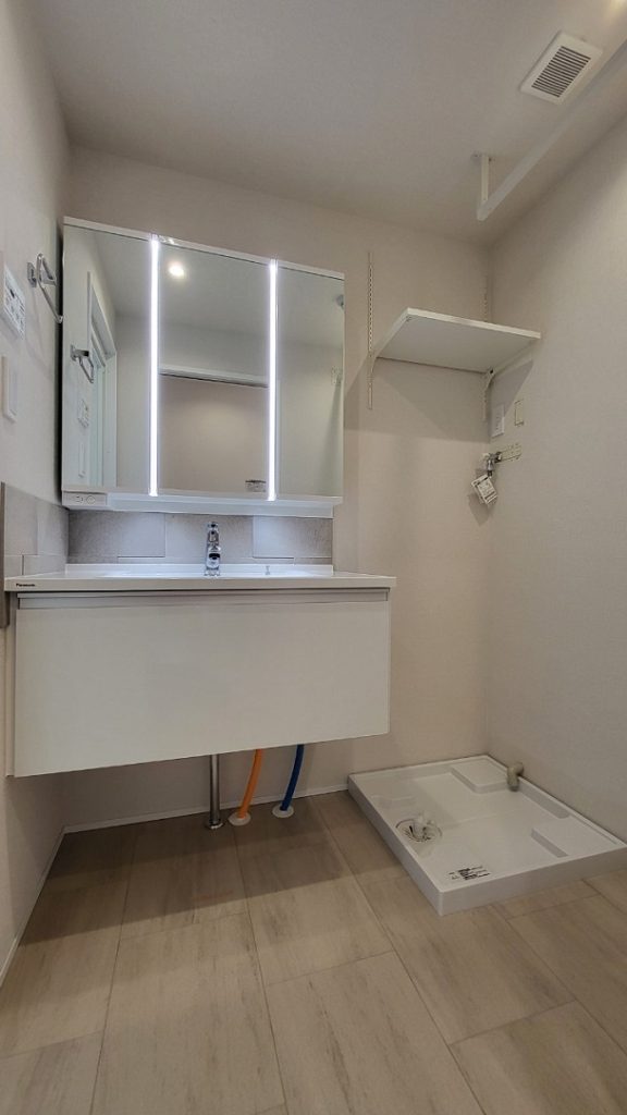 収納建具対応、可動式収納、カーテンレール、ピクチャーレール、レースカーテン、ランドリーフープ、洗面室物干し、足元保安灯、給気レジスター、洗濯パン上収納、エアコン先行配管