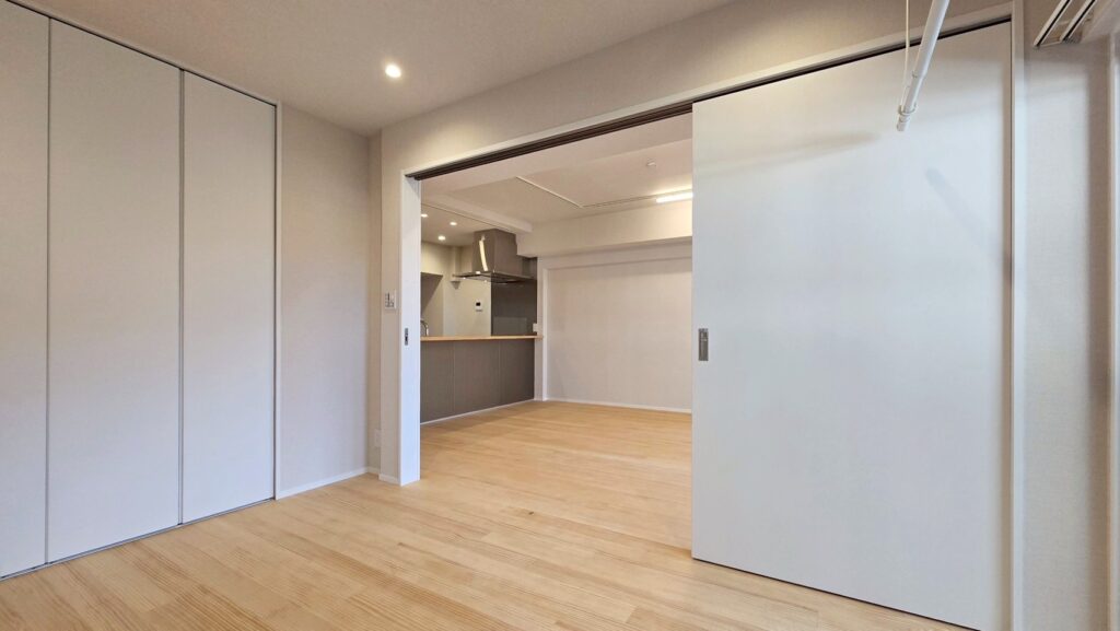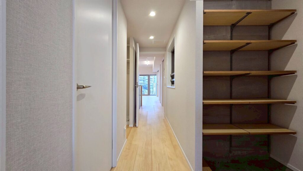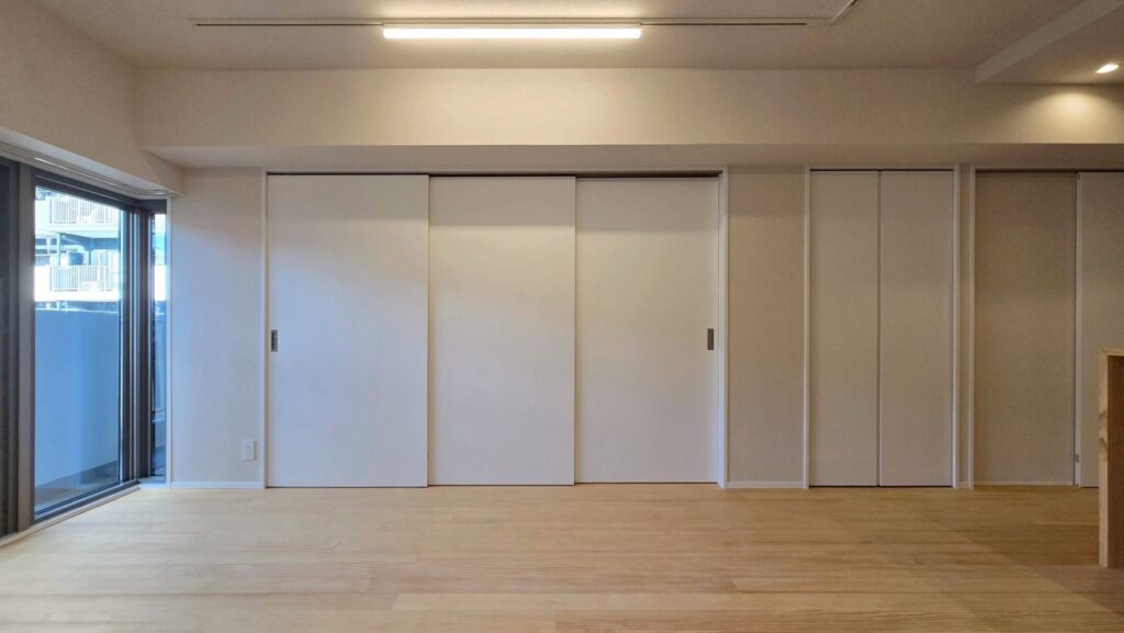 | ドア(ハンドルメッキ、鍵付※箇所による)、収納:取手レス折戸 |