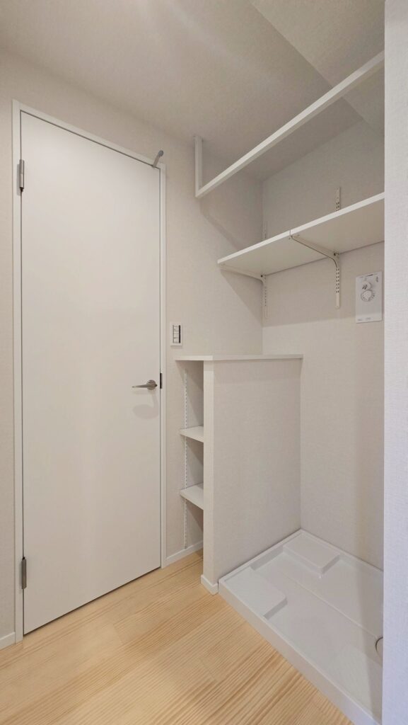 | 収納建具対応、可動式収納、カーテンレール、ピクチャーレール、レースカーテン、ランドリーフープ、洗面室物干し、足元保安灯、給気レジスター、洗濯パン上収納 |