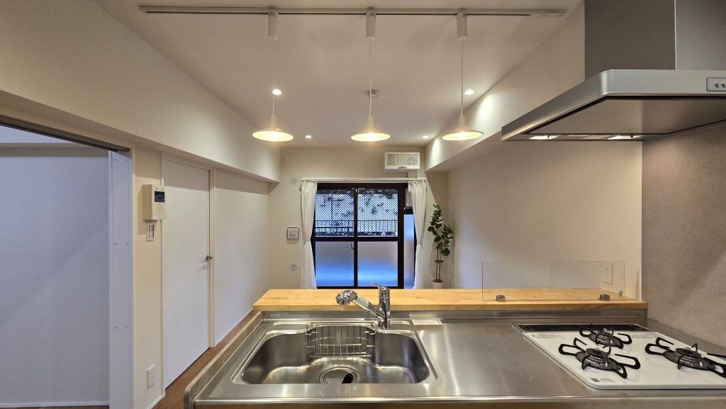 リビングダイニングまたはキッチンカウンター上部にはライティングレールを設置しています